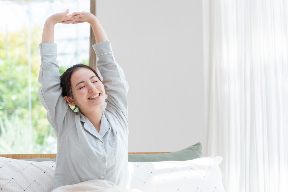 朝太陽の光を浴びると睡眠を促すメラトニンが分泌されやすくなり、睡眠の質が上がるほか、睡眠障害の防止にもつながるとされています。