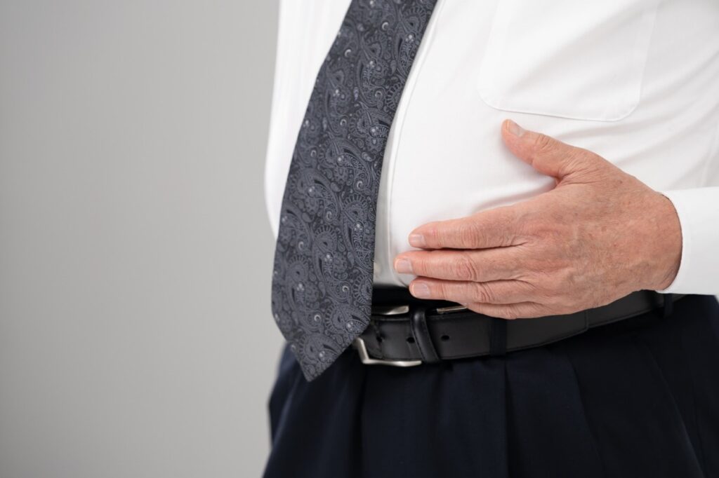 皮下脂肪や内臓脂肪が過剰にたまって肥満になると、お腹も突き出てきてしまいます。脂肪を落とすための食事管理や運動などが欠かせません。